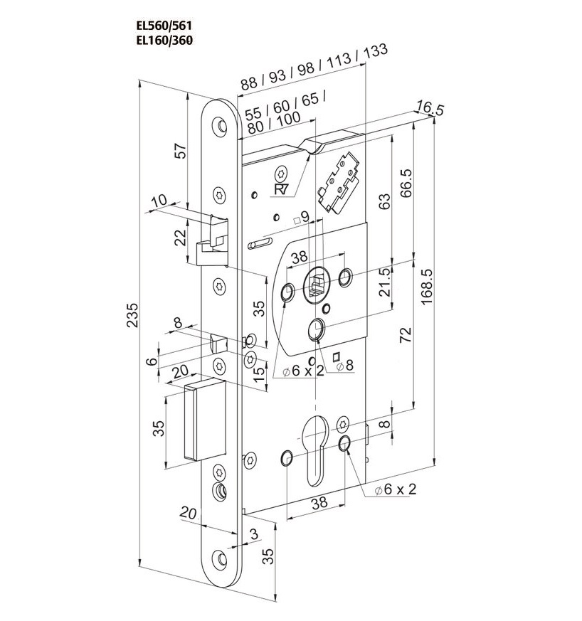 Backset: 55 mm.