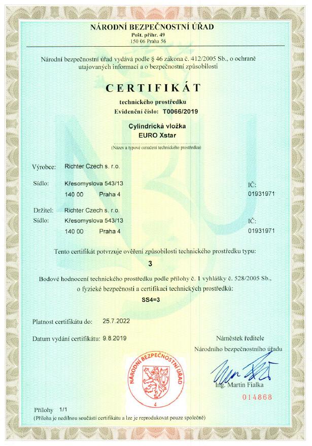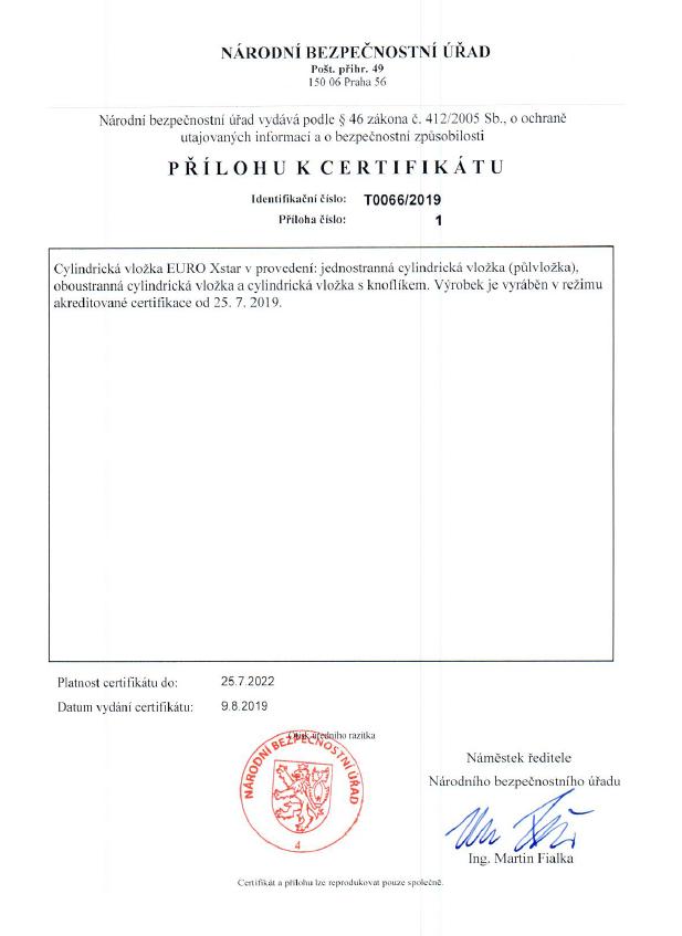 Bezpečnostní 10stavítková knoflíková vložka s ocelovou tycí proti rozlomení a knoflíkem na jedné straně.