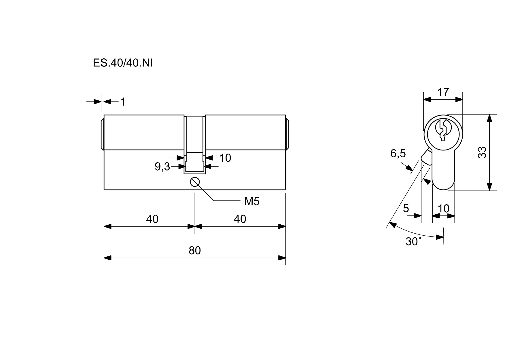 Cylindrická vložka FAB 3.00/DPNs 40+40, 5 klíčů, prostupová spojka