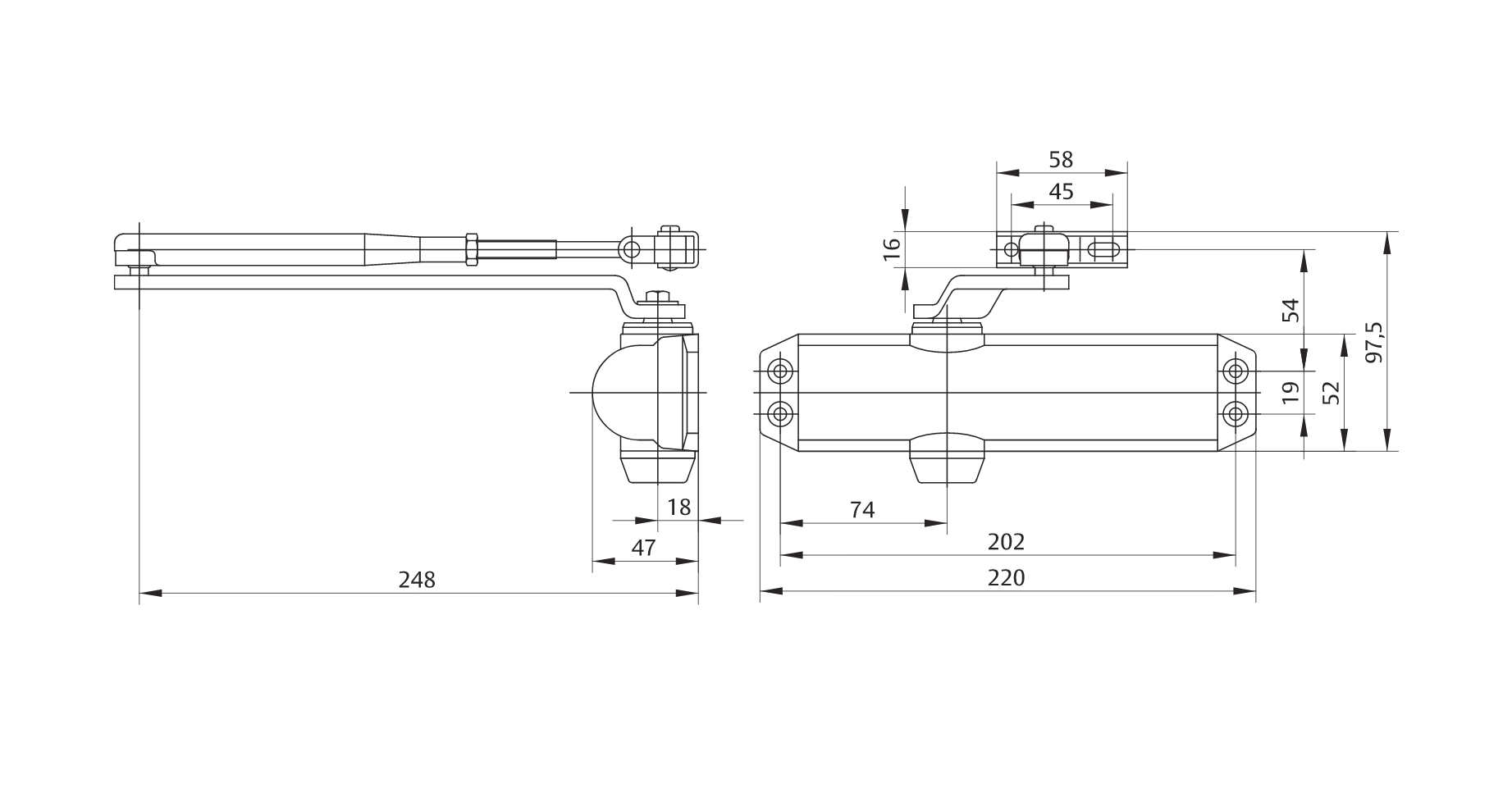 • Dveřní zavírač s hřebenovou technologií a aretačním ramínkem (L141) pro levé i pravé dveře do šířky 1100 mm a váhy 80 kg (síla 4).