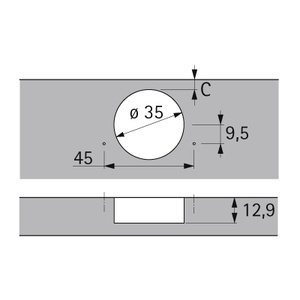 tlumený pro silné dveře (až 32 mm), úhel otevření 95°, vrtání misky 45x9.5 mm, montáž misky na vrut.