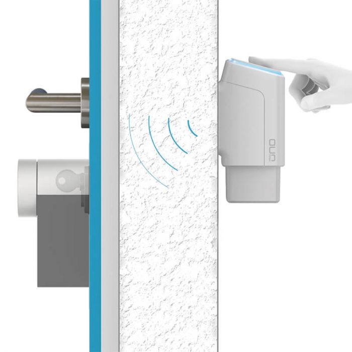 Pokud použije čtečku otisku prstů Ekey osoba oprávněna vstoupit, čtečka odešle rádiový signál (BLE) do cytrého zámku NUKi a tím se dveře odemknou (nebo zamknou).