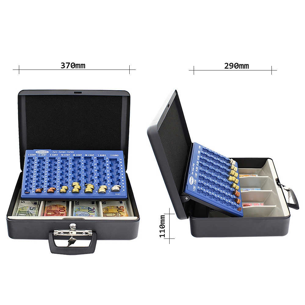 • Vysoce kvalitní europokladnička z ocelového plechu k bezpečné úschově mincí a bankovek.