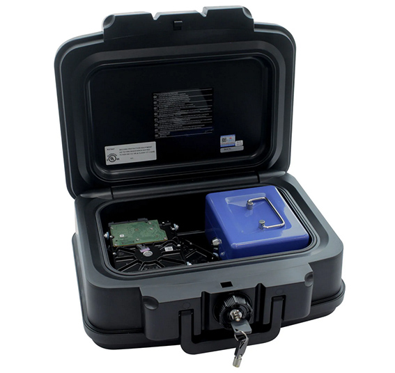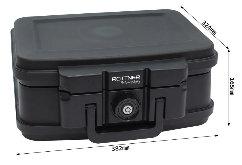 Menší ohnivzdorný box v černé barvě s modelovým označením Fire Data 1 disponuje klasickým cylindrickým zámkem dodávaným spolu s 2 klíči na otevření. Box má praktickou rukojeť pro snadný přenos uložených věcí přímo v boxu. Box je ohnivzdorný, a to až po dobu 30 minut pro papírové dokumenty (testováno při teplotě 843 °C). Box však není však voděodolný. Kvalitní plastové provedení vydrží i časté přenášení.