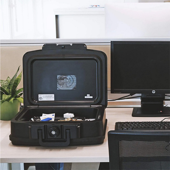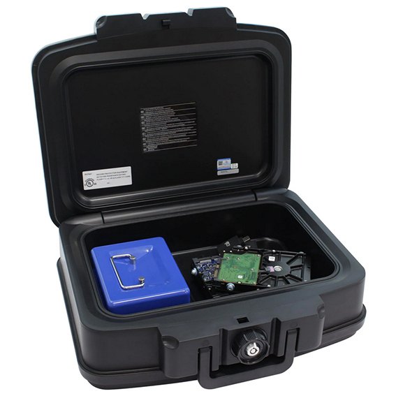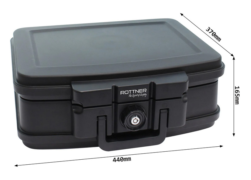 Černý box z modelové řady Fire Data disponuje klasickým cylindrickým zámkem dodávaným spolu s 2 klíči. Box Fire Data 2 je ohnivzdorný, a to až po dobu 30 minut pro papírové dokumenty (testováno při teplotě 843 °C). Uložené věci v boxu můžete jednoduše přenášet díky vestavěné výklopné rukojeti. Box ale není vodotěsný. Při častém přenášení potěší kvalitní plastové provedení, které odolá i náročnějšímu zacházení.