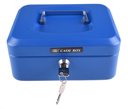 Kovová pokladna s plastovou přihrádkou na kovové mince. Příhrádka je vyjímatelná. Součástí příruční pokladny jsou dva klíče. Na vyžádání jsme schopni vyrobit další klíč.