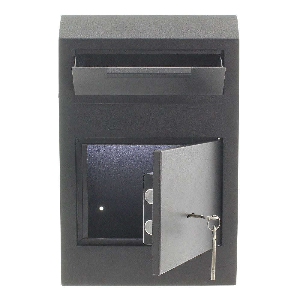 • Sejf je vybaven zámkem na klíč (2x) a je zabezpečen proti výběru skrze vhazovací klapku.