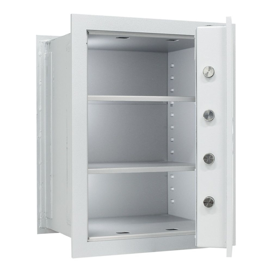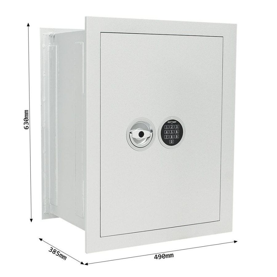 Stěnový elektronický trezor disponuje bezpečností třídou I (ČSN EN 1143-1) a nabízí spolehlivou ochranu pro uložené dokumenty, šanony, cennosti nebo osobní doklady, či cestovní doklady. Všechny uložené věci jsou chráněny jednoplášťovým korpusem, dveřmi hrubými 85 mm a uzamykáním na všech 4 stranách. Zámek je bez nouzového klíče a s napájením na 9V baterii. Uvnitř se nacházejí 2 poličky, které podle vašich potřeb mohou přerozdělit vnitřní dispozici trezoru. Kromě standardní výbavy je možné k trezoru doobjednat doplňkovou výbavu jako např. vnitřní sejf, teleskopickou polici nebo teleskopickou registraturu. Upozorňujeme, že při umístění stěnového trezoru je zapotřebí, aby síla betonové obezdívky kolem trezoru byla minimálně 10 cm.