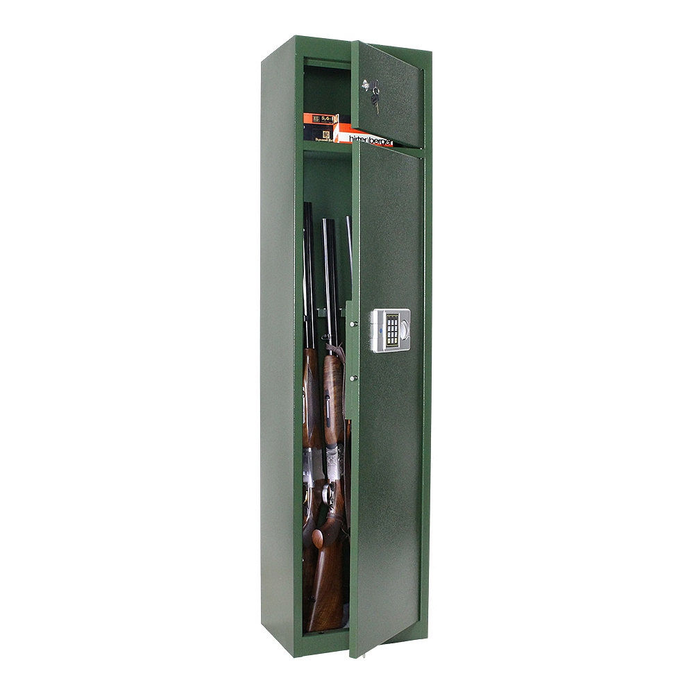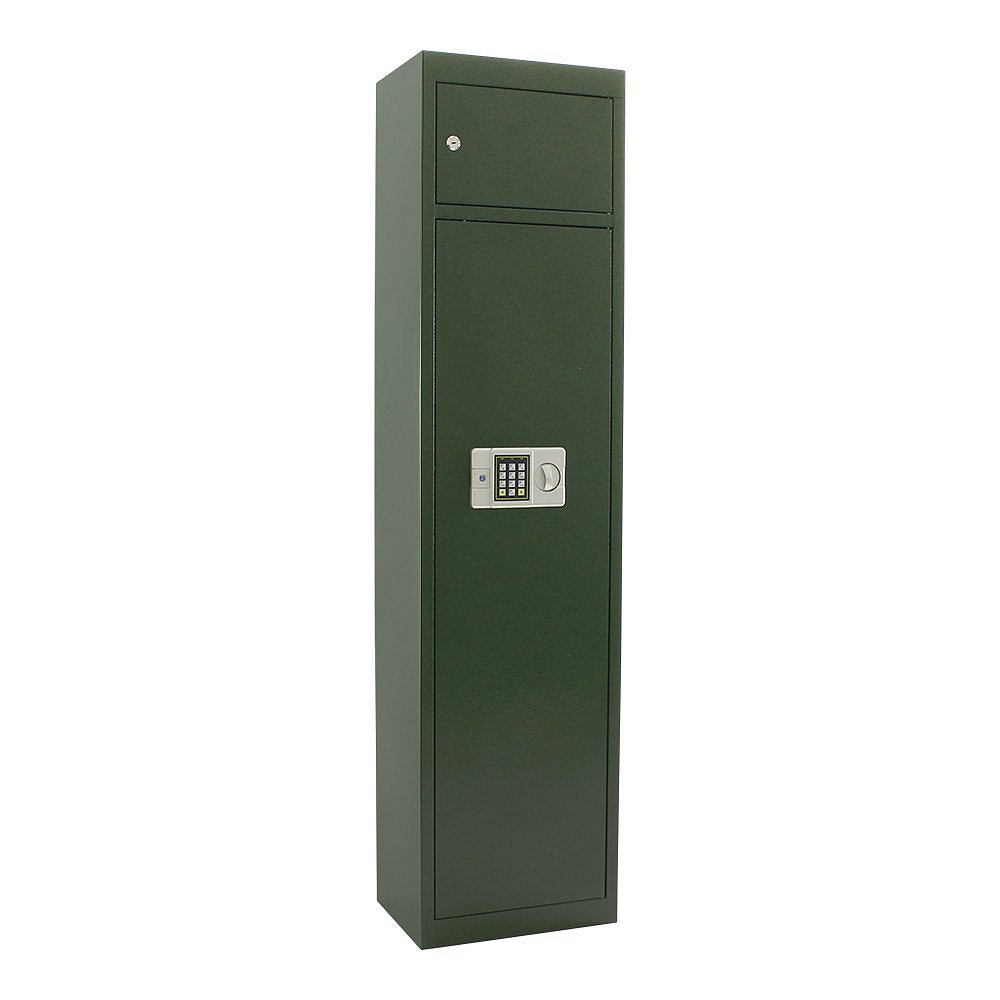 • Jednoplášťová (0,7 mm) skříň pro pět dlouhých zbraní, která umožňuje uzamykání munice v separátní schránce výšky 250 mm (19,5 l) ve standardním provedení trezoru.