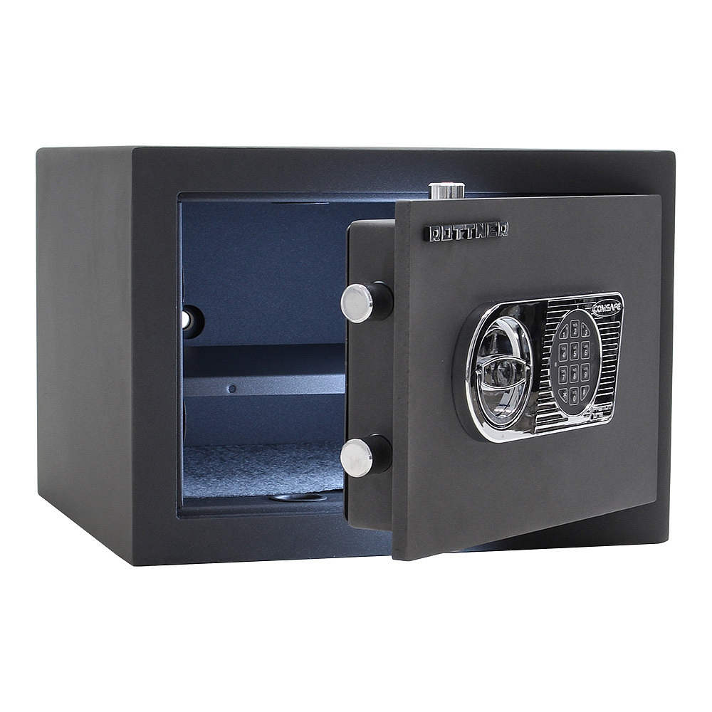 • Dvouplášťový nábytkový trezor s tloušťkou dveří 12 mm je odolný proti vloupání a menšímu ohni.