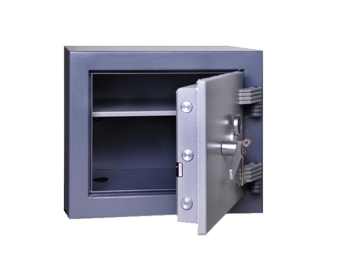 • Dvouplášťový skříňový trezor certifikovaný v I. bezpečnostní třídě s tloušťkou přední části dveří 8 mm (ocel).