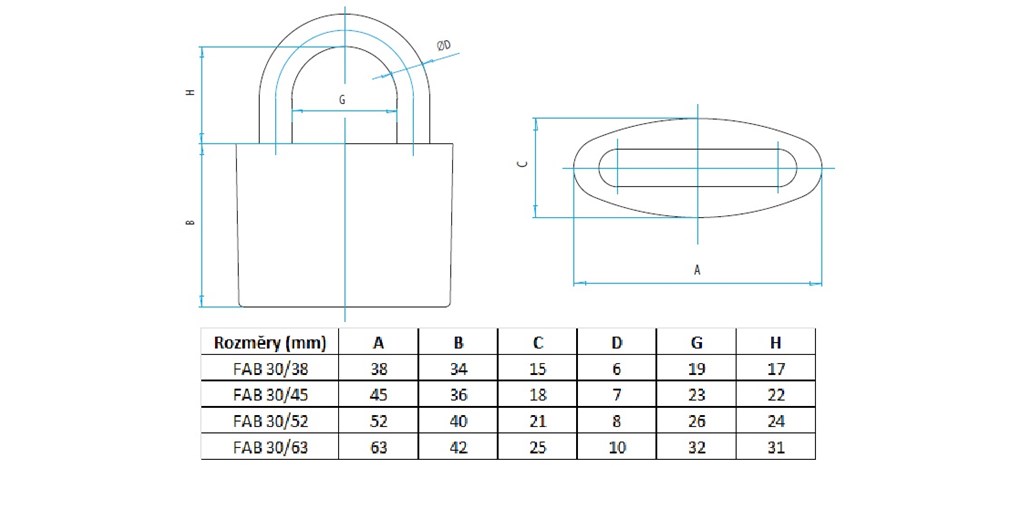 • Visací zámek modré (komaxit) barvy.