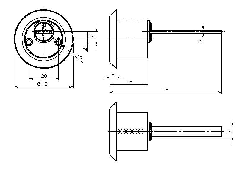 • ocelové táhlo rozměru 2x7 mm spojené s cyl. vložkou je možné upravit dle tloušťky dveří